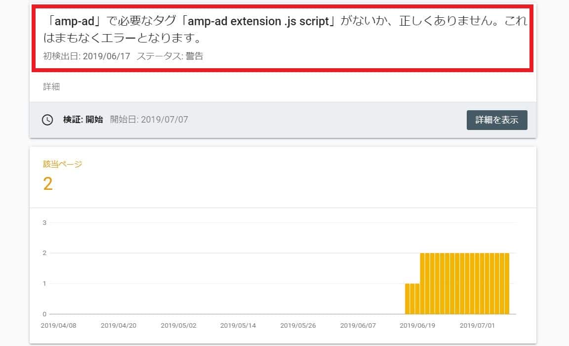 「amp-ad」で必要なタグ「amp-ad extension .js script」がないか、正しくありません。これはまもなくエラーとなります。の警告を解決する方法