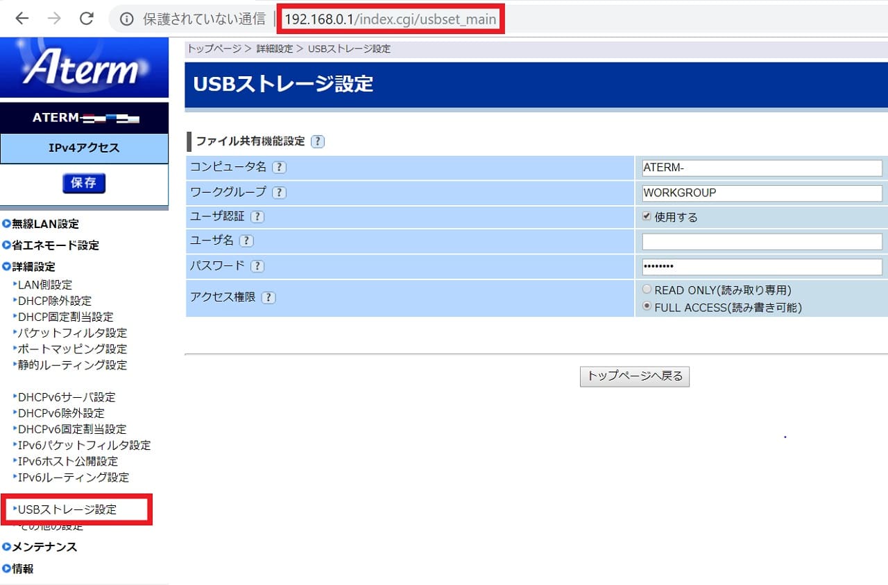 ホームゲートウェイ Aterm BL902HWのUSBに挿したフラッシュメモリーにアクセスする方法