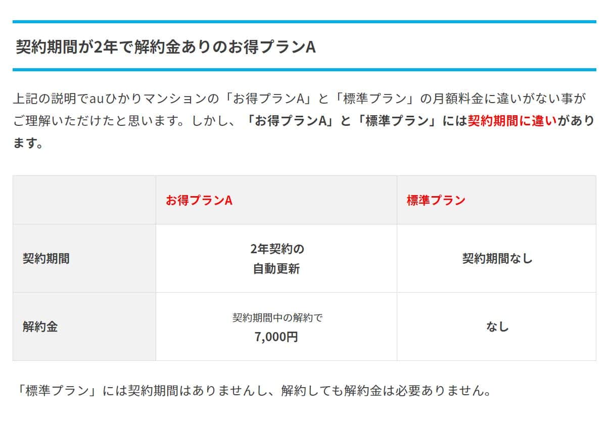 と言うツッコミはさておき、現在もある「お得プランA」は「おうちトラブルサポート」と、もれなく 2年契約の自動更新が付いてきます。