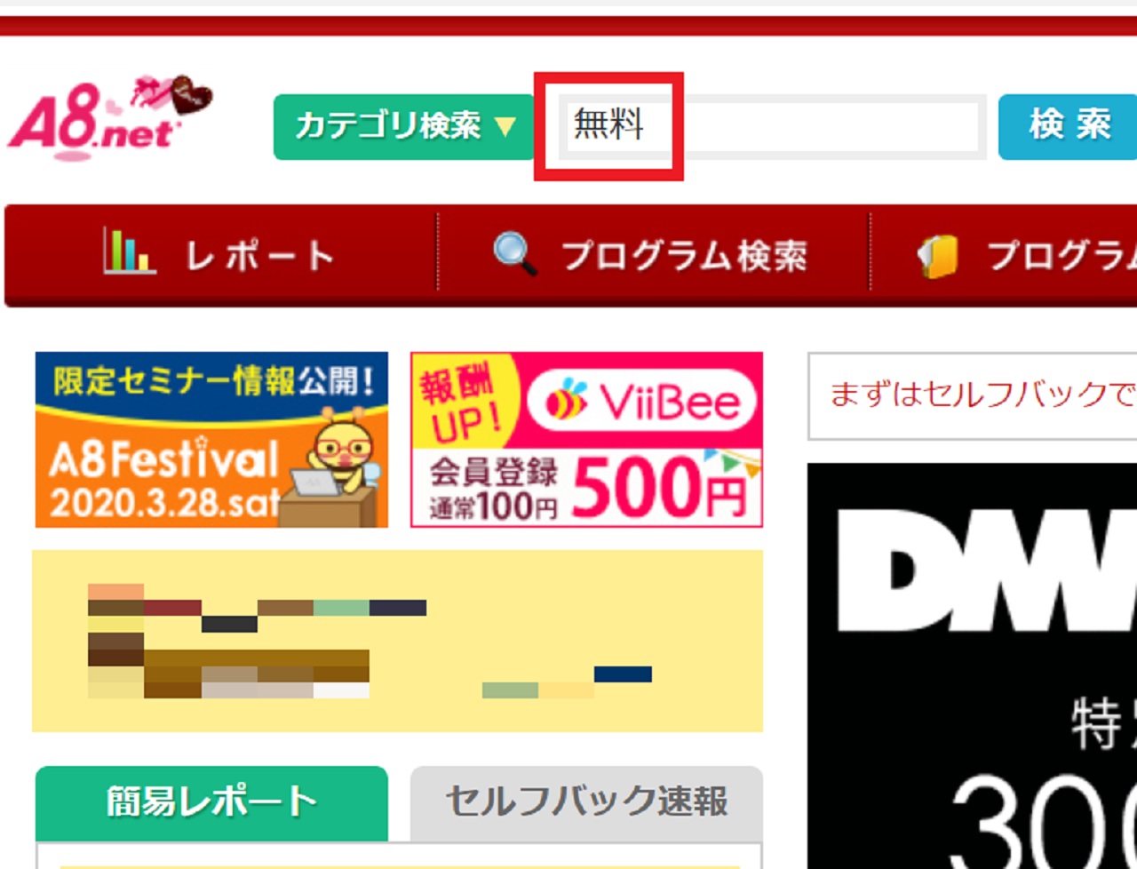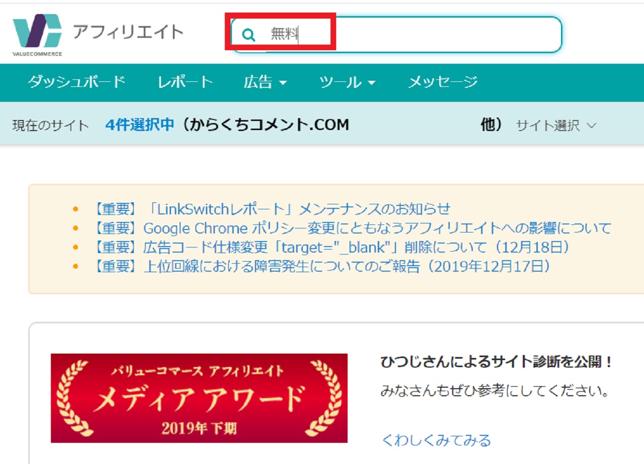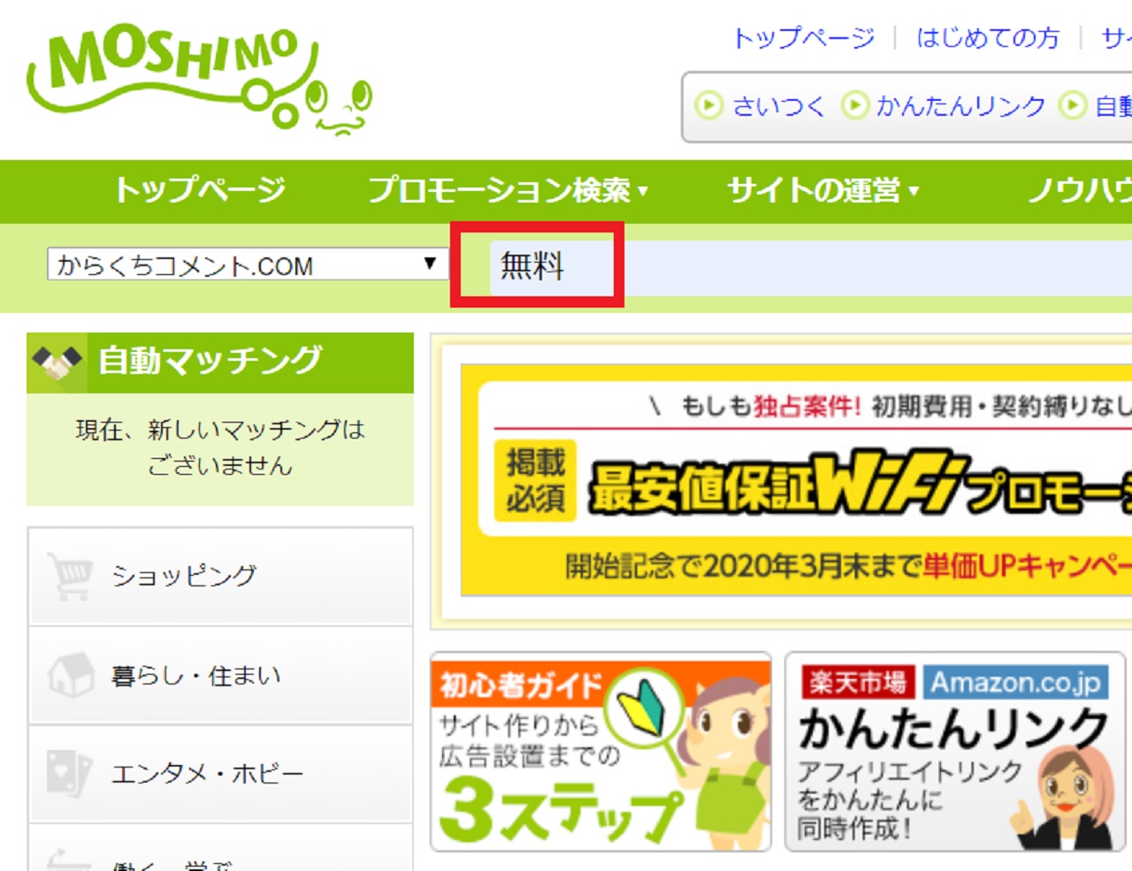もしもアフィリエイトは以下の場所で「無料」と検索します。