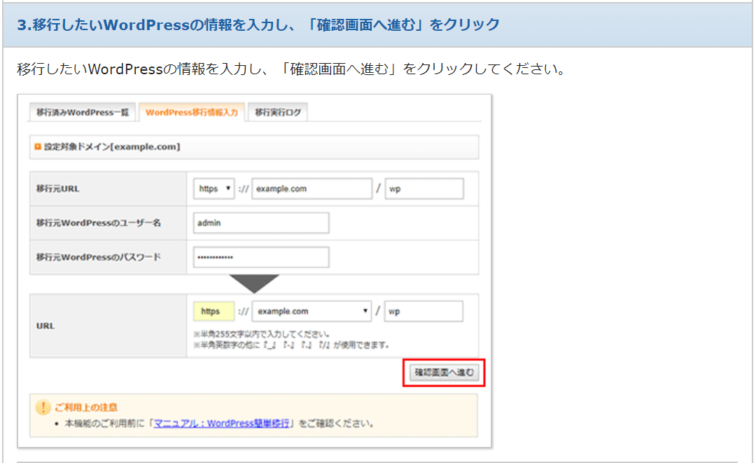 レンタルサーバー「エックスサーバー」のご利用マニュアル|「WordPress簡単移行」機能に関するご案内です。すでにエックスサーバー以外で運用中のWordPressを、ログイン情報を入力するだけでエックスサーバーに簡単に移行することが可能で...