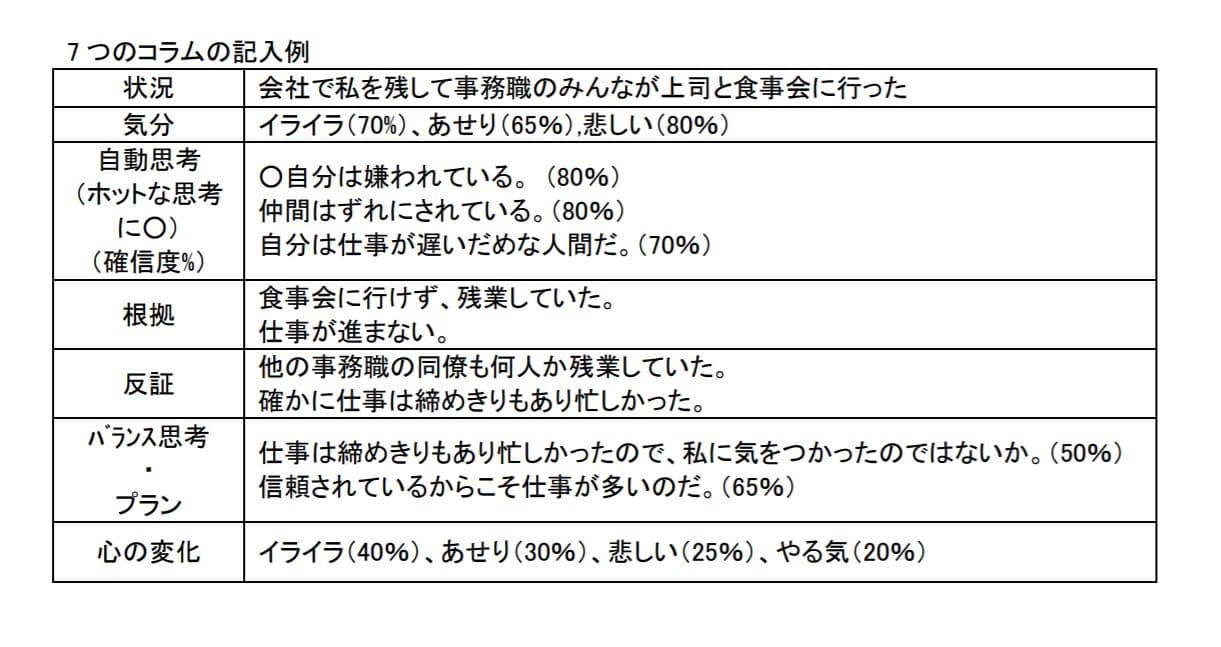 試しに、わたしがトライしてみます。まずは7つのコラムの書き方と記入例から説明します。
