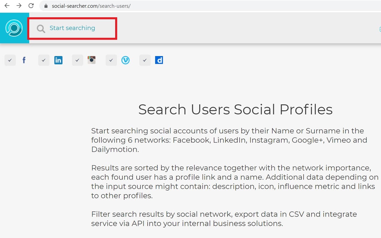 また、Facebook、LinkedIn、Instagram、Vimeo、Dailymotionの5つのネットワークで名前を検索することもできます。