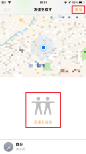 まず初めに、位置情報をオンにしていない場合は「友達を探すで位置情報を利用できるようにするには、位置情報サービスをオンにしてください」と出るので [設定] をタップして [位置情報サービス] をオンにしてください。