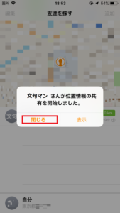 もし相手があなたに位置を共有をするとこんな通知が表示されます。通知については音も含めて通知センターから設定できます。