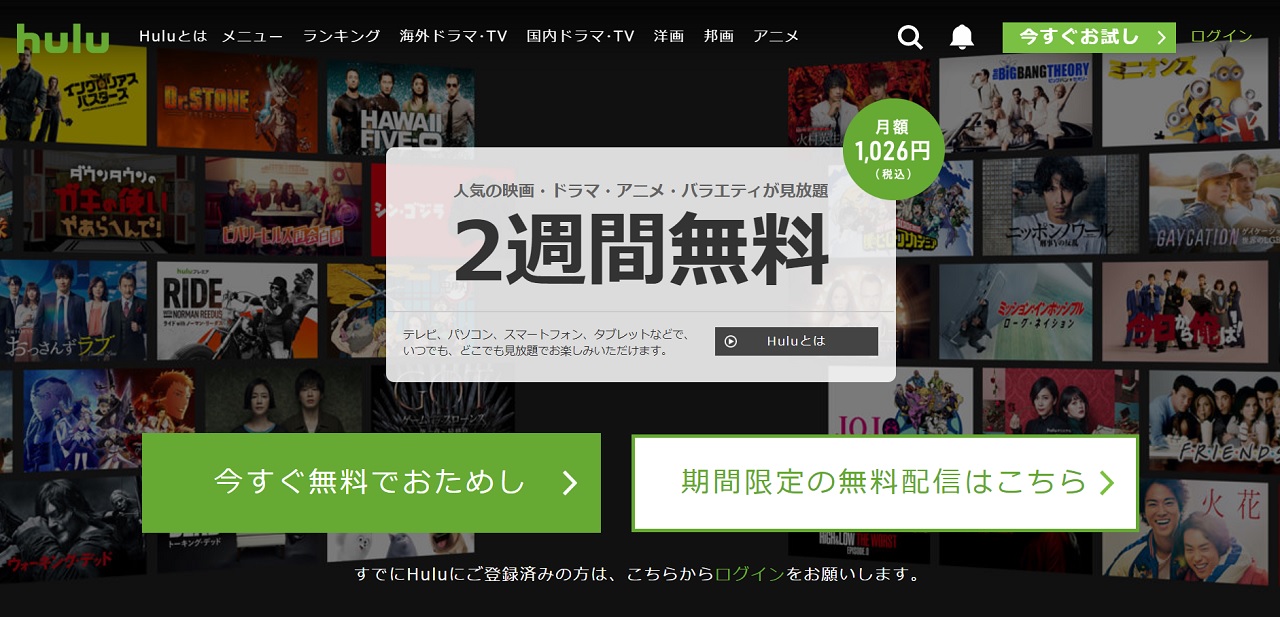 1. 「Hulu公式サイト 」にアクセス