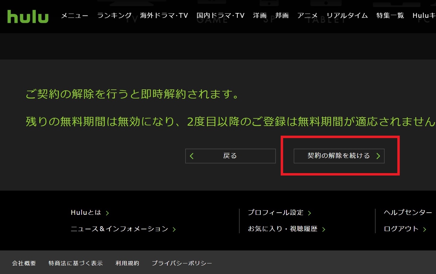 それにしても、解約ボタンが見つかりづらいのはHuluだけじゃなくどこの動画配信サイトでも同じなんだけどね。バッサリ