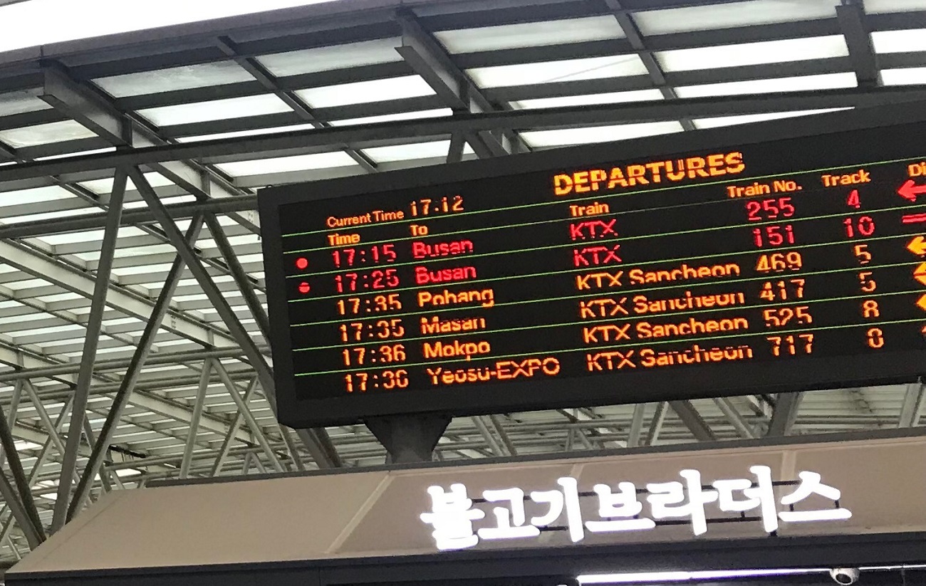 KTXにはローマ字での表示があります。チケットカウンターでは日本語は通じなさそうですが英語は通じます。