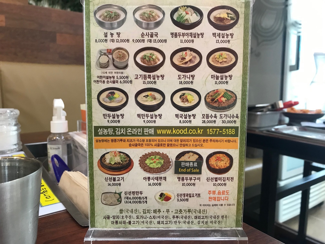 日本語のメニューはありませんが、有名なソルロンタンが 800円で食べられます。