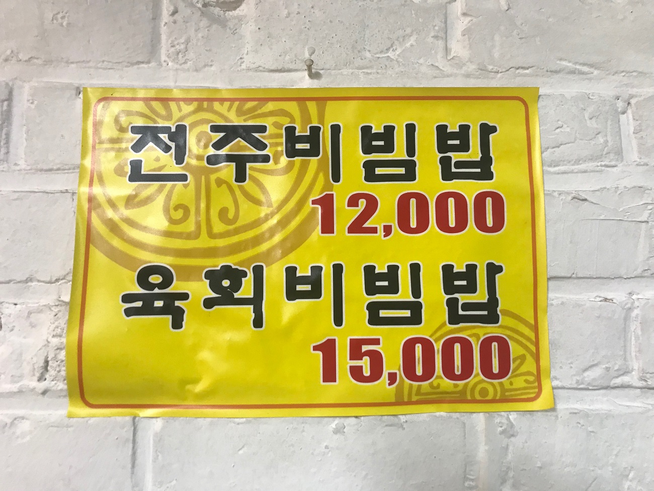 全州(チョンジュ)の有名なビビンバ屋さんも壁に据え置きのメニュー型でした。