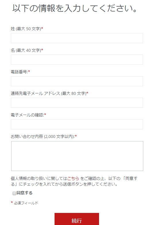 2. [お問い合わせ] をクリックすると以下のページに遷移