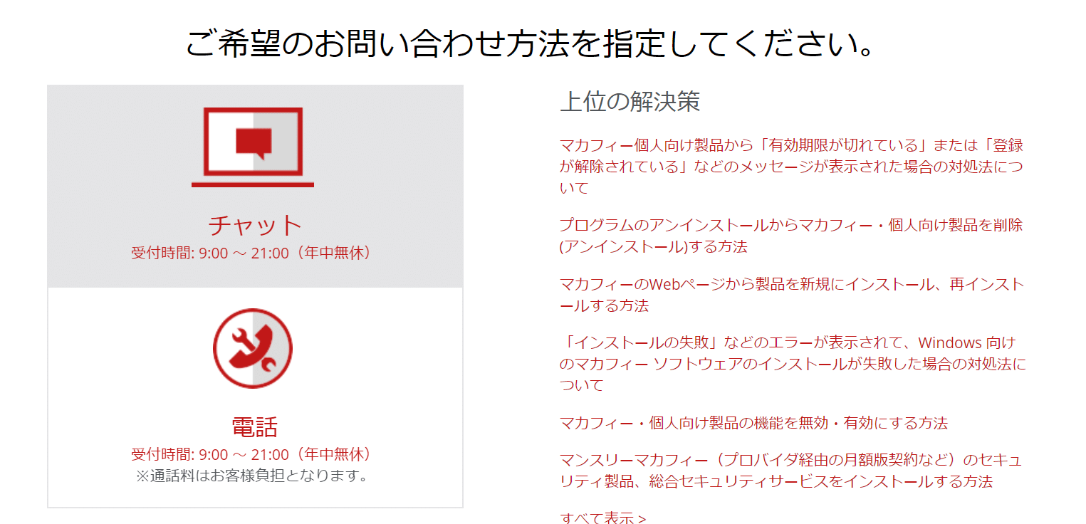 それでは、まずはマカフィーへのお問合せの方法や、なぜ文字化けしたマカフィーをアンインストールすることになったのか見てきましょう。