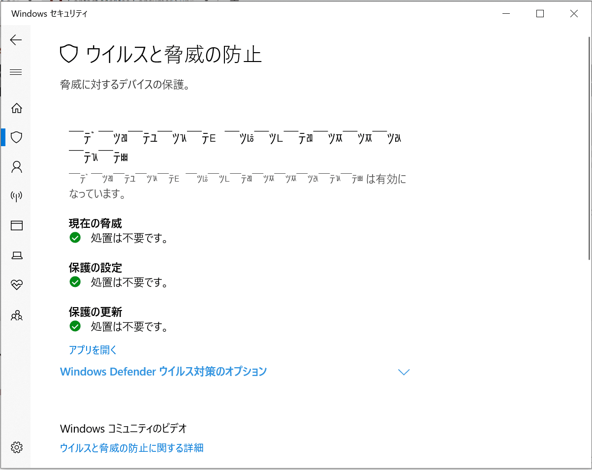 お待たせしました。Windowsセキュリティのセキュリティソフトの表示が文字化けている状況についてのお問い合わせでお間違いないでしょうか