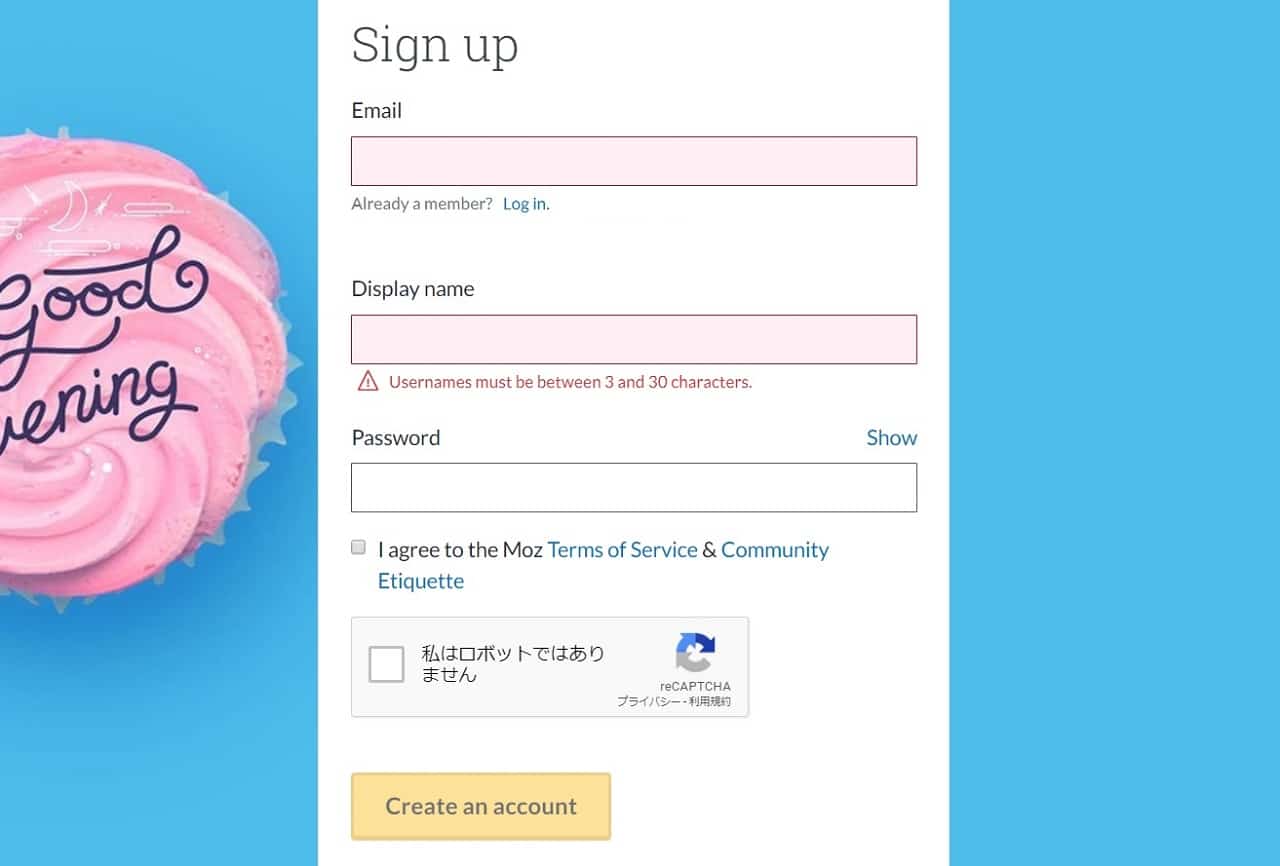 1. Mozに移動してアカウントを作ります