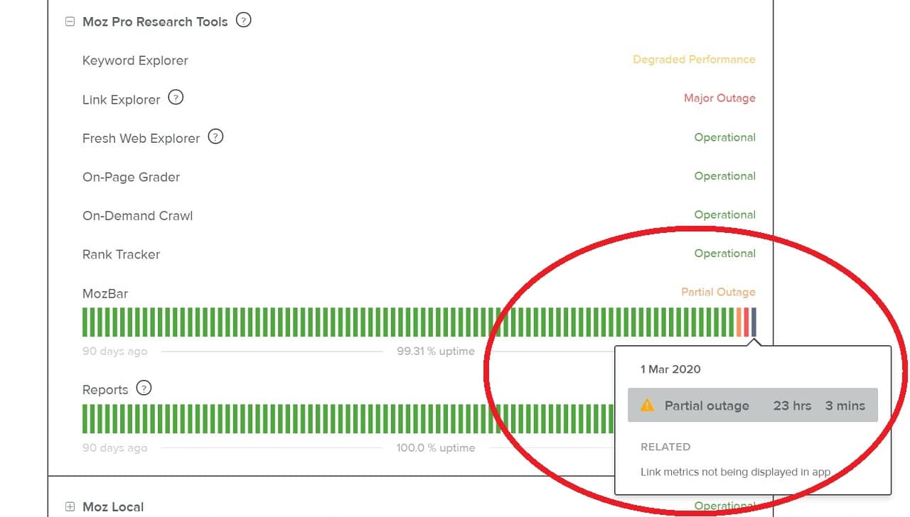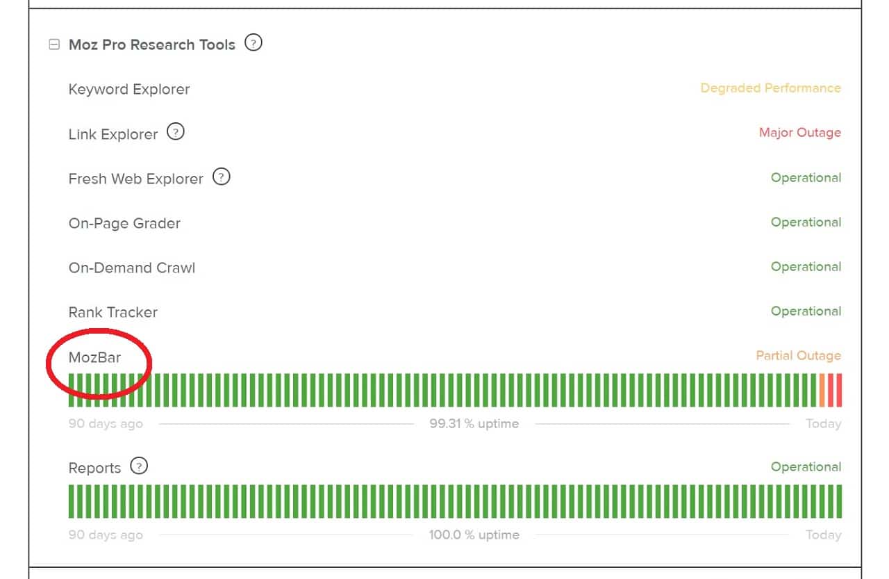 トラブルシューティングを始める前に、まずはMoz製品がダウンしていないかMozヘルスを確認しましょう。