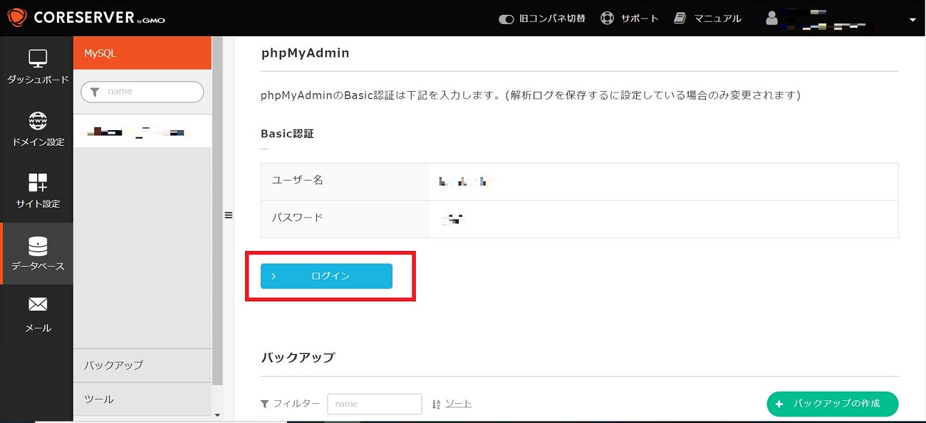 phpMyAdmin にログインする方法【CORESERVER】