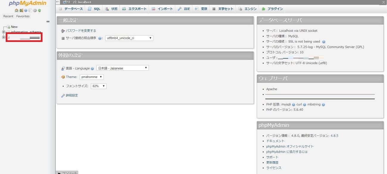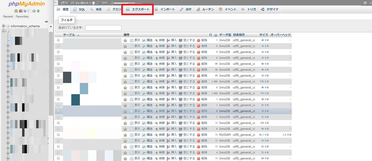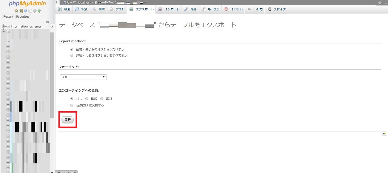 phpMyAdmin でデータベースをエクスポート手順