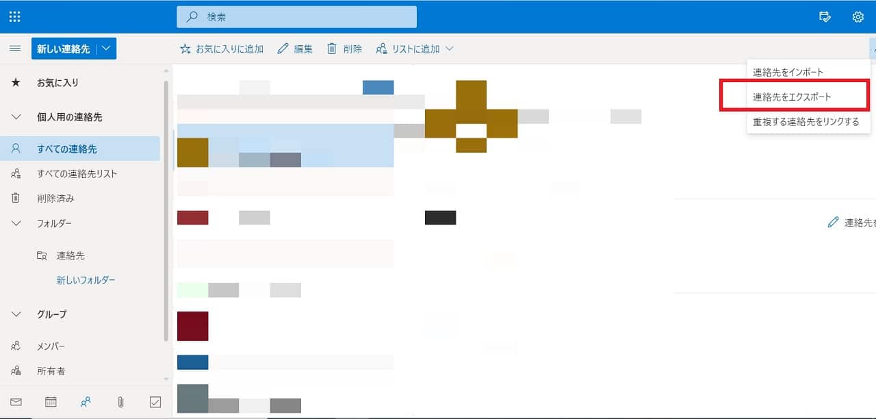 Outlook連絡先からcsvファイルを一括エクスポートする方法