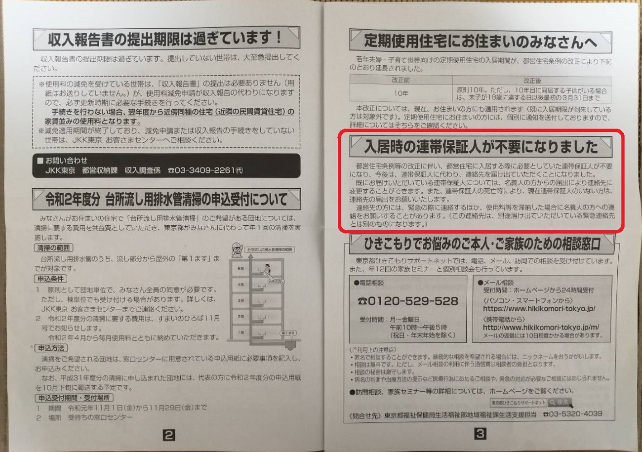 - 都営住宅条例改正により連帯保証人の代わりに知り合いの連絡先を提出
