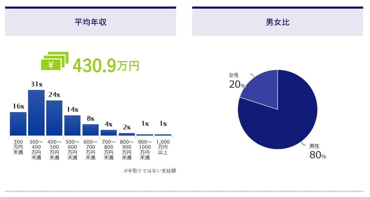 これらは掲載されている求人を基にデータが抽出されている可能性が高いです。そのため、言い換えれば上記は転職する人の年収と言い換えてもいいかもしれません。