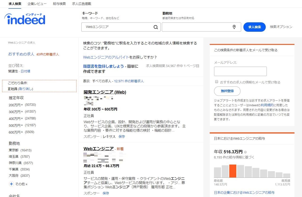 転職サイトindeedでは日本における Webエンジニアの平均年収を 516.3万円だと掲載しています。また、最低額は 148.5万円、最高額 1,115.5万円となっています。